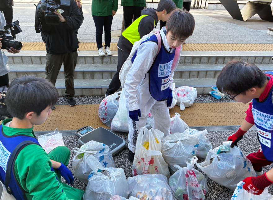 あっという間に多くのゴミを集めた川口工業高校「クリーンLV0」