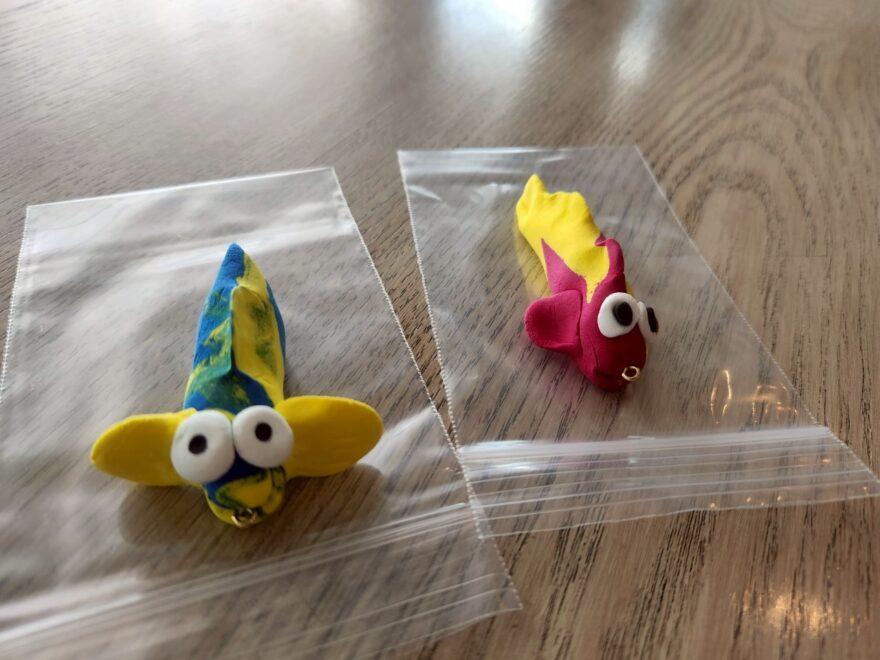 豊海おさかなミュージアムでは、色とりどりの紙粘土でマハゼを作りながら、マハゼのヒレの位置、特徴などを学びました。