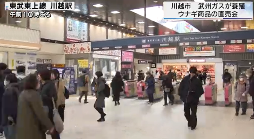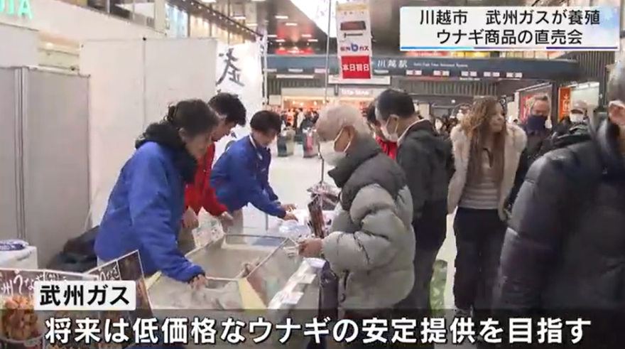 埼玉県の企業「武州ガス」さんが自社の養殖場で育てたウナギの冷凍食品を、1月6~11日まで東武東上線の川越駅で販売しました!